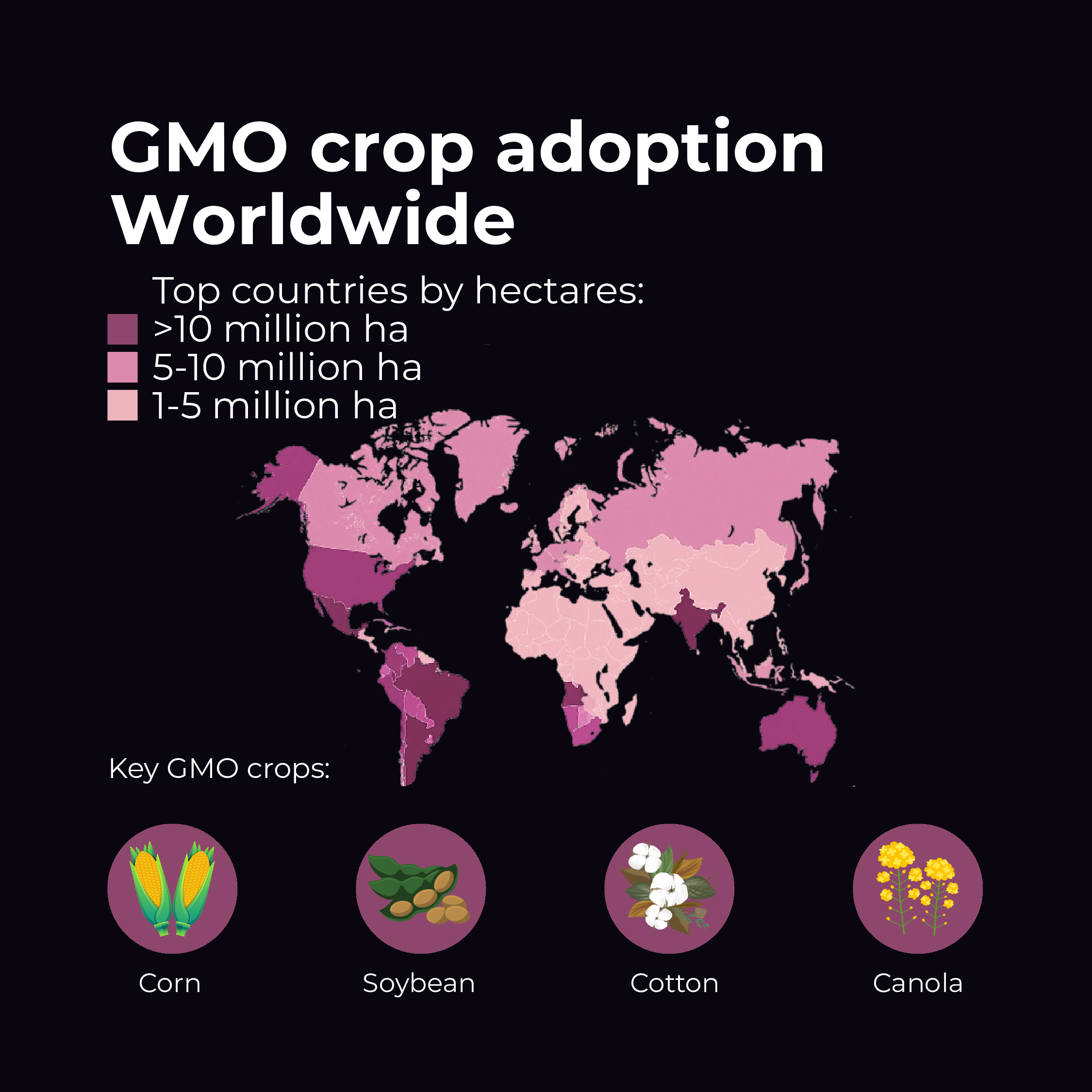 - Global Records: The most recent figures (as of 2018) indicated 26 countries were planting biotech crops, and another 44 countries imported or used them, meaning a total of 70 countries were benefiting from GMOs either through cultivation or consumption. Over that period, around 17 million farmers (the majority smallholder farmers in developing countries) adopted GM seeds – a record participation for any agricultural innovation.