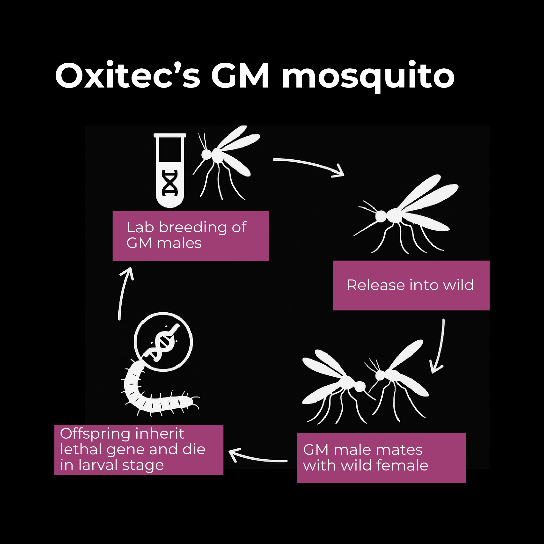 In the 21st century, biotechnology companies began genetically engineering mosquitoes as a novel control method. The British company Oxitec emerged as a leader, developing genetically modified strains of Aedes aegypti (the mosquito species that spreads dengue, Zika, and chikungunya). Here’s how Oxitec’s approach works: