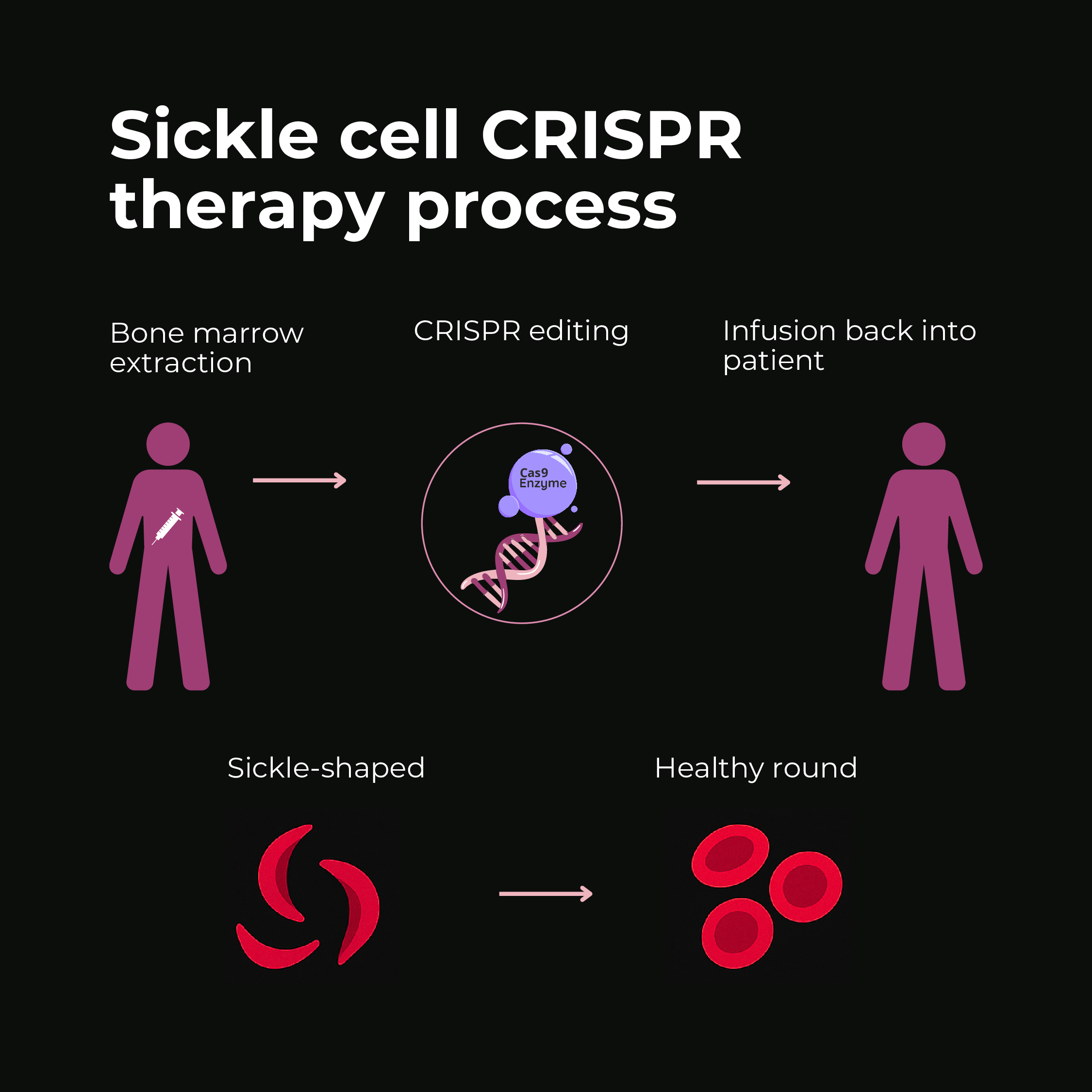 - This culminated in late 2023 with regulatory approvals. In November 2023, the UK became the first to authorize a CRISPR-based medicine, granting approval to a therapy called Casgevy for sickle cell. In December 2023, the U.S. FDA approved the same CRISPR therapy (developed by Vertex and CRISPR Therapeutics) along with another gene therapy (Bluebird Bio’s Lovo-cel, now called Lyfgenia) for sickle cell. These approvals are historic – Casgevy is the world’s first treatment where patients’ cells are edited by CRISPR and given back as a cure.